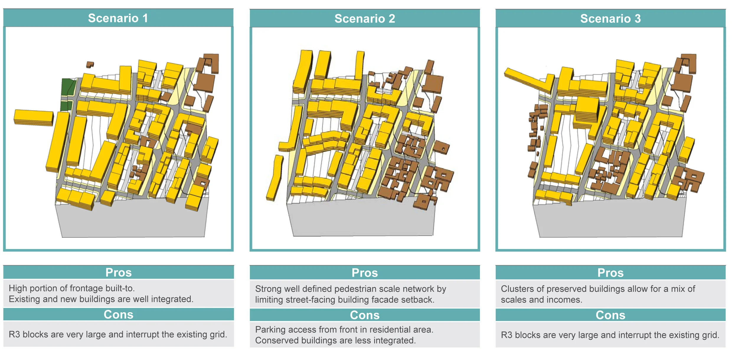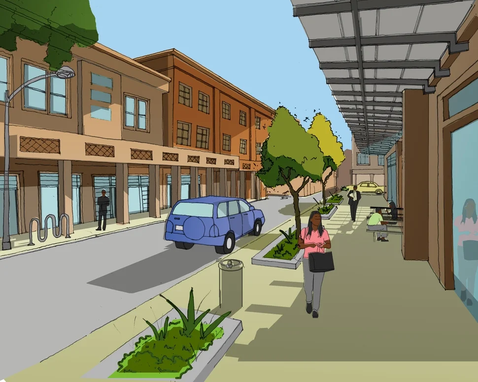 Individual contribution included testing existing zoning codes and planning tools to develop sustainability metrics. Tested and refined proposed benchmarks at district, block, and parcel level through modeling exercises. Drew parcel-level perspectives by hand and rendered in Photoshoop.