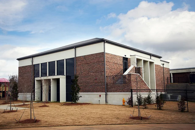 Completed in 2011, the Trinity Presbyterian Classroom addition sought to accommodate the Trinity Presbyterian School’s growing lower school enrollment. The plan includes a two-story, 11,500 sf building with four new classrooms and a dedicated art room. The focus of the plan, a new library and research room, previously located in the main school building, built upon the color scheme and design of the upper school library. The design team aimed to create a colorful and fun space that reflected the youthful nature of the students expressed through the interior finishes, furniture, and circular shapes of the ceiling treatments and lighting. The project master plan includes a corridor that would connect the classroom addition to the existing school campus while creating a new entrance lobby to the school.